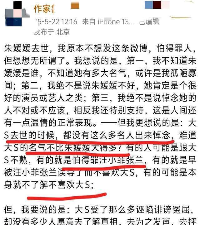 发表此番言论的东说念主夸口为作者,但其言论却有些及其。似乎在示意,皇冠分红受到圈内若干名东说念主的吊唁,与自己在圈内的影响力考虑,与朱媛媛本东说念主无关。若是念念为大s鸣抵抗,齐备不错坦率地发表个东说念主不雅点,而不是强即将朱媛媛牵涉进来。